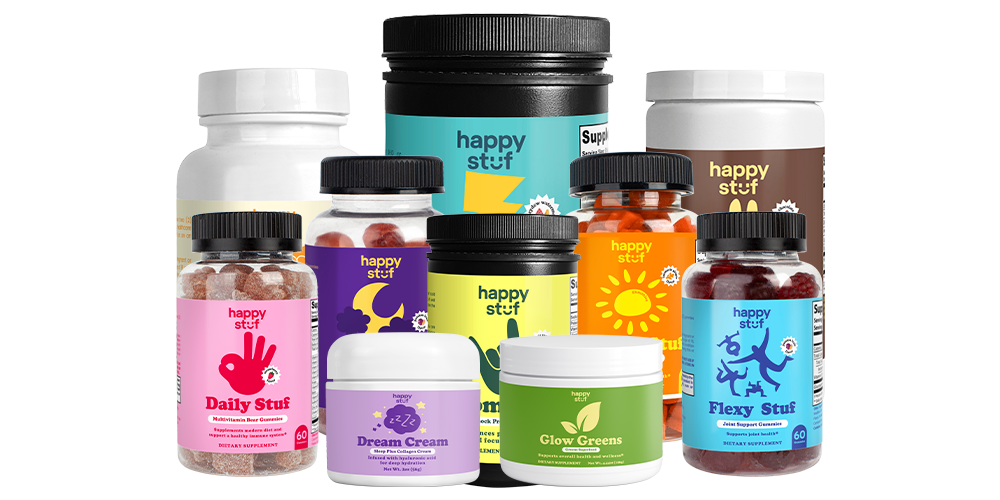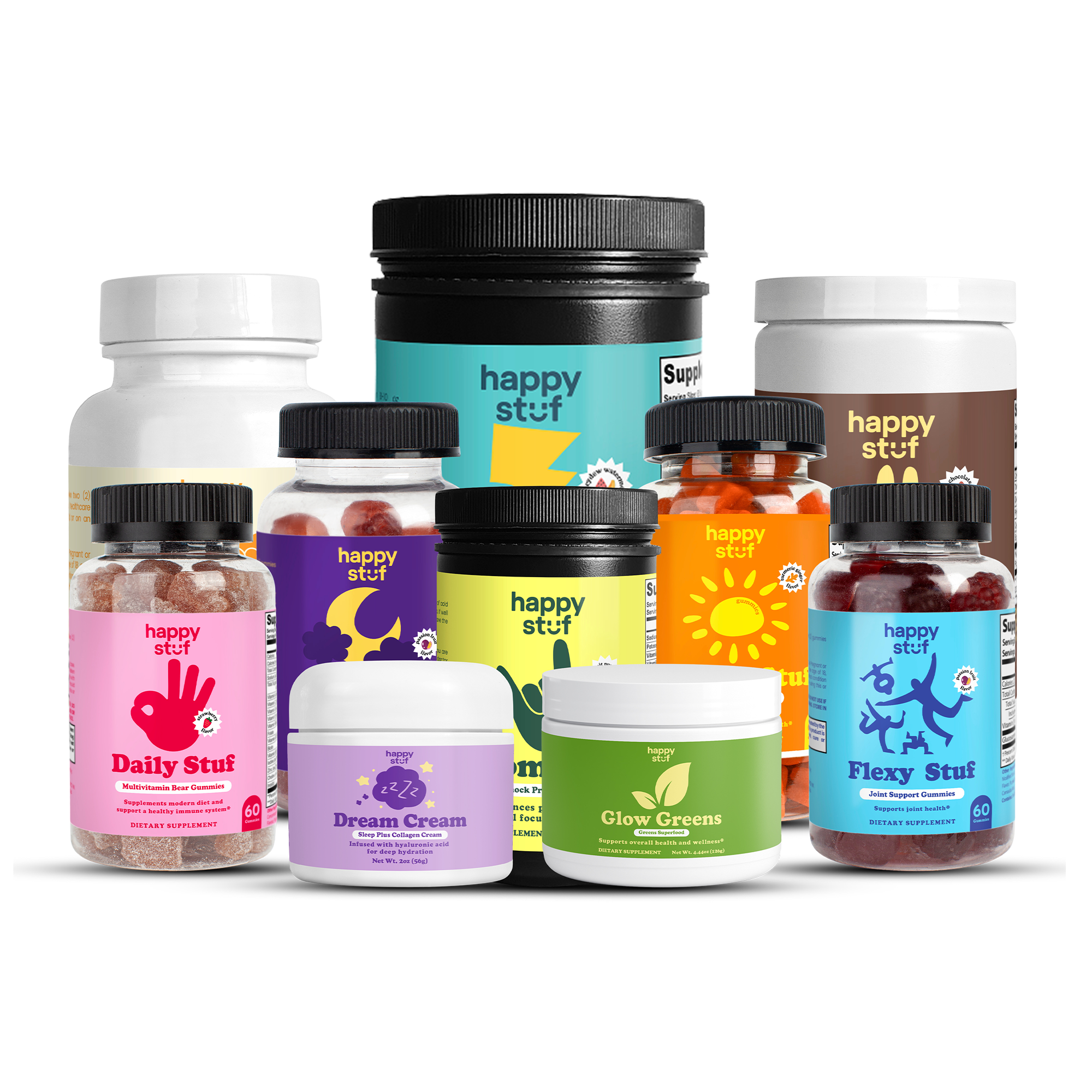 The Whole Vibe Box supports mood, energy, focus, rest, and overall wellness. All 10 Happy Stuf favorites in one bundle for full-circle daily vitality.